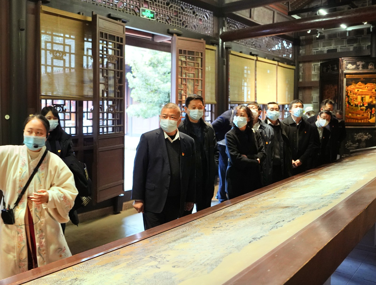 在三蘇祠,大家跟隨現(xiàn)場講解引導(dǎo)依次參觀了饗殿、啟賢堂、木假山堂、來鳳軒、披風(fēng)榭等建筑,學(xué)習(xí)了“讀書正業(yè)、慈孝仁愛、非義不取、為政清廉”的三蘇家訓(xùn)家風(fēng)。其中,三蘇父子勤政為民、廉政惠民的故事讓每位參觀人員都為之感動,大家紛紛表示深受教育和啟迪。