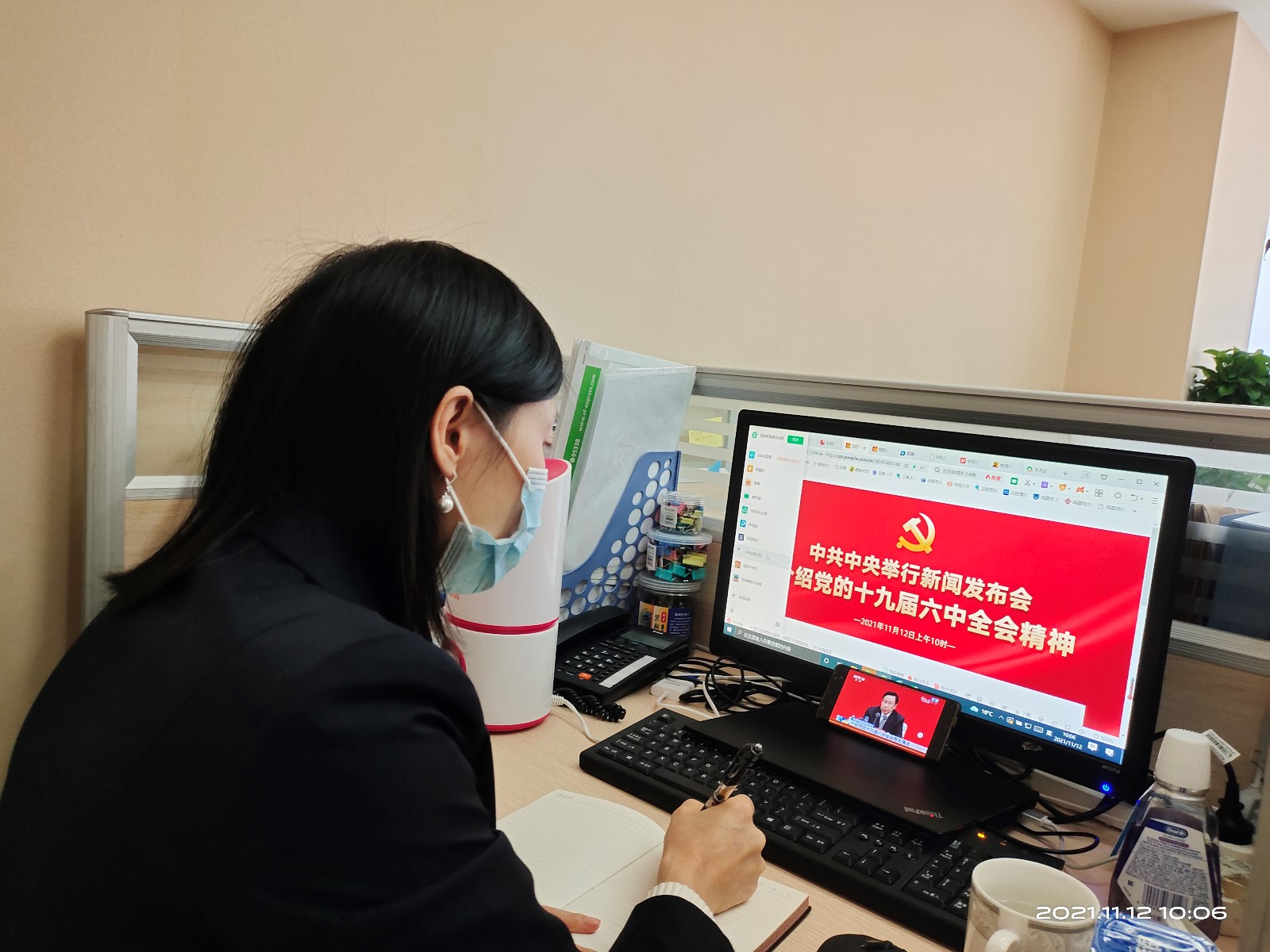 通過觀看發布會,全體黨員職工深刻認識到,確立習近平同志黨中央的核心、全黨的核心地位,確立習近平新時代中國特色社會主義思想的指導地位,對新時代黨和國家事業發展、對推進中華民族偉大復興歷史進程具有決定性意義。在建黨百年之際,黨中央召開六中全會,全面總結黨的百年奮斗重大成就和歷史經驗,是鄭重的歷史性、戰略性決策,體現了我們黨重視和善于運用歷史規律的高度政治自覺,體現了我們黨牢記初心使命、繼往開來的自信和擔當。