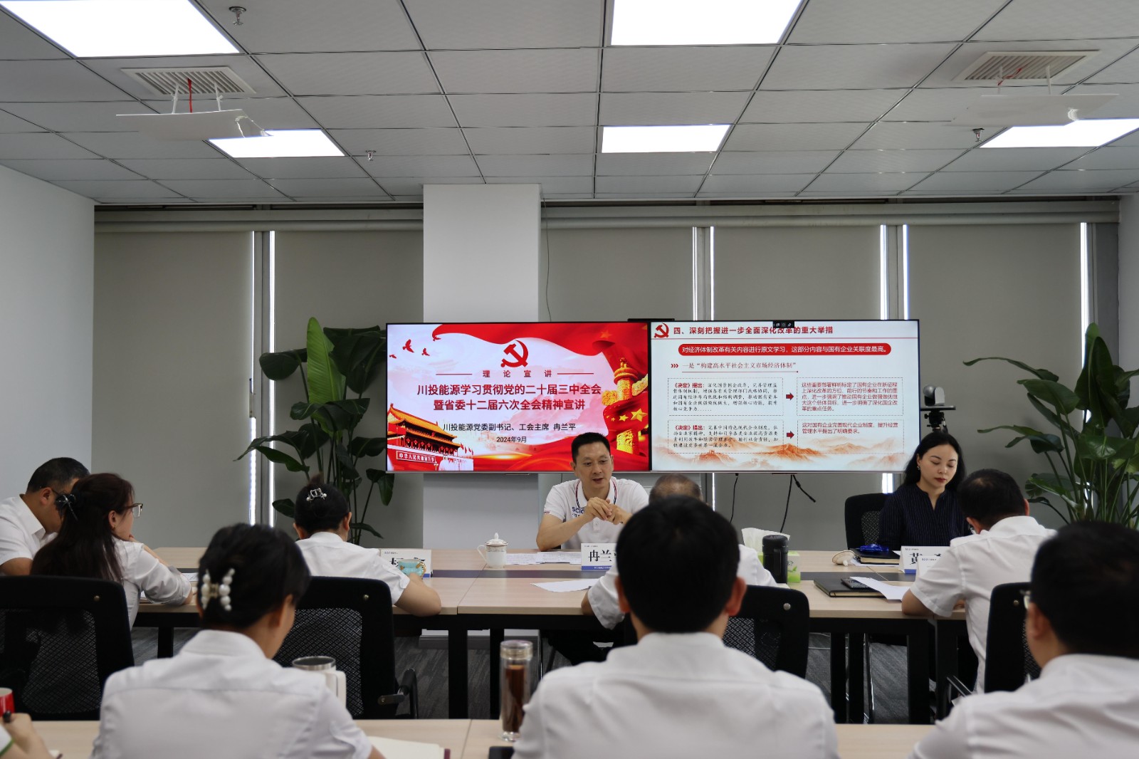 9月26日,川投能源黨委副書記、工會主席冉蘭平赴川投電力公司專題宣講黨的二十屆三中全會精神和省委十二屆六次全會精神,為進(jìn)一步全面深化改革凝心聚力。川投電力黨委副書記、總經(jīng)理蔡承德主持會議。