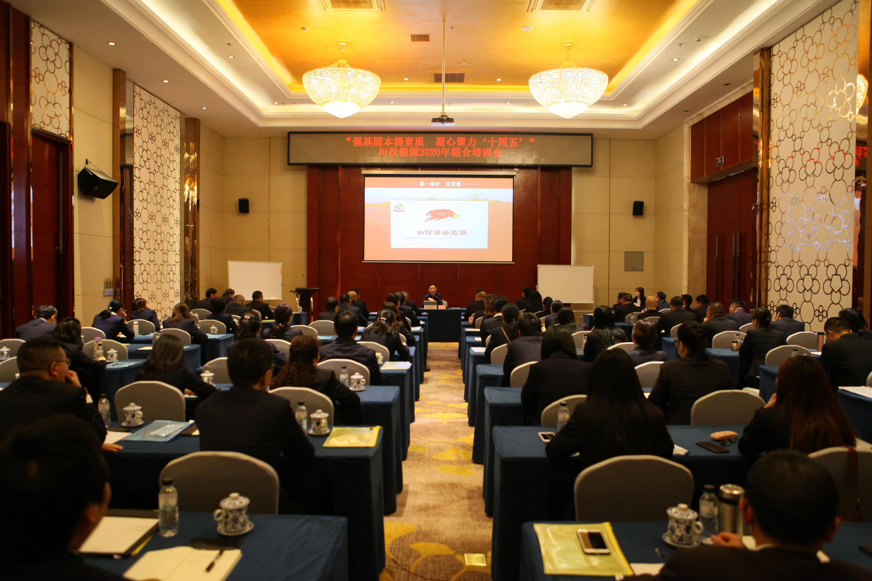 2020年是川投能源黨委“五個先鋒”品牌創建元年,為將黨建深度融入公司各項中心工作,11月3日,川投能源在攀枝花召開“強基固本提素質,凝心聚力‘十四五’”綜合培訓會。川投集團黨委副書記、董事鄧凱以“說黨建、談發展、話廉潔”為題,語重心長地為公司上了一堂生動精彩的專題黨課。本次黨課,對教育引導公司全體員工黨建引領、修身齊家、廉潔自律和推動改革發展等方面具有非常重要的意義。川投能源黨委書記、副董事長、總經理楊洪參加授課,黨委副書記、工會主席楊超龍主持授課。川投能源公司本部和各所屬企業黨委、經營班子成員以及部分員工100余人聆聽了專題黨課。