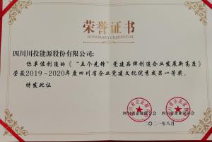 公司“五個先鋒”黨建品牌獲得2019-2020年度四川省企業黨建文化優秀成果一等獎